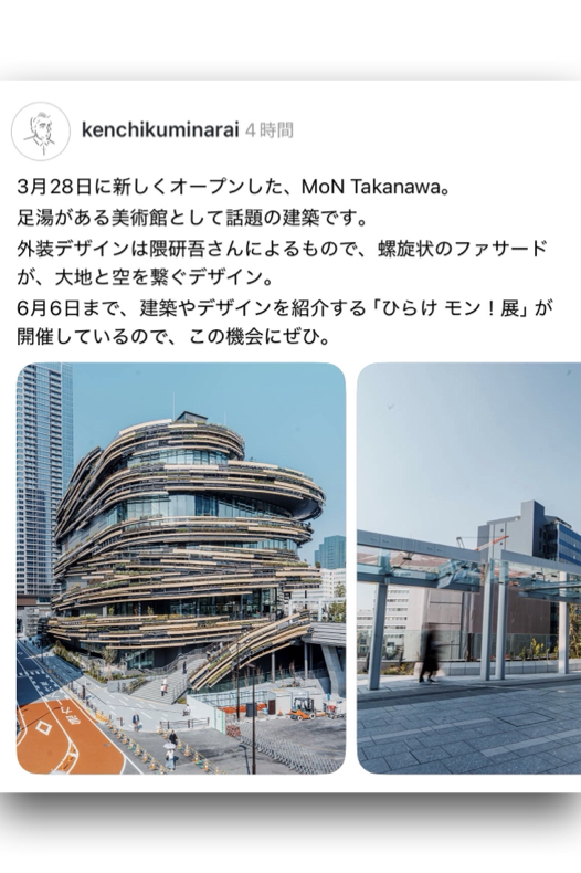 美術館(MoN Takanawa:The Museum of Narratives)の開業にあたり