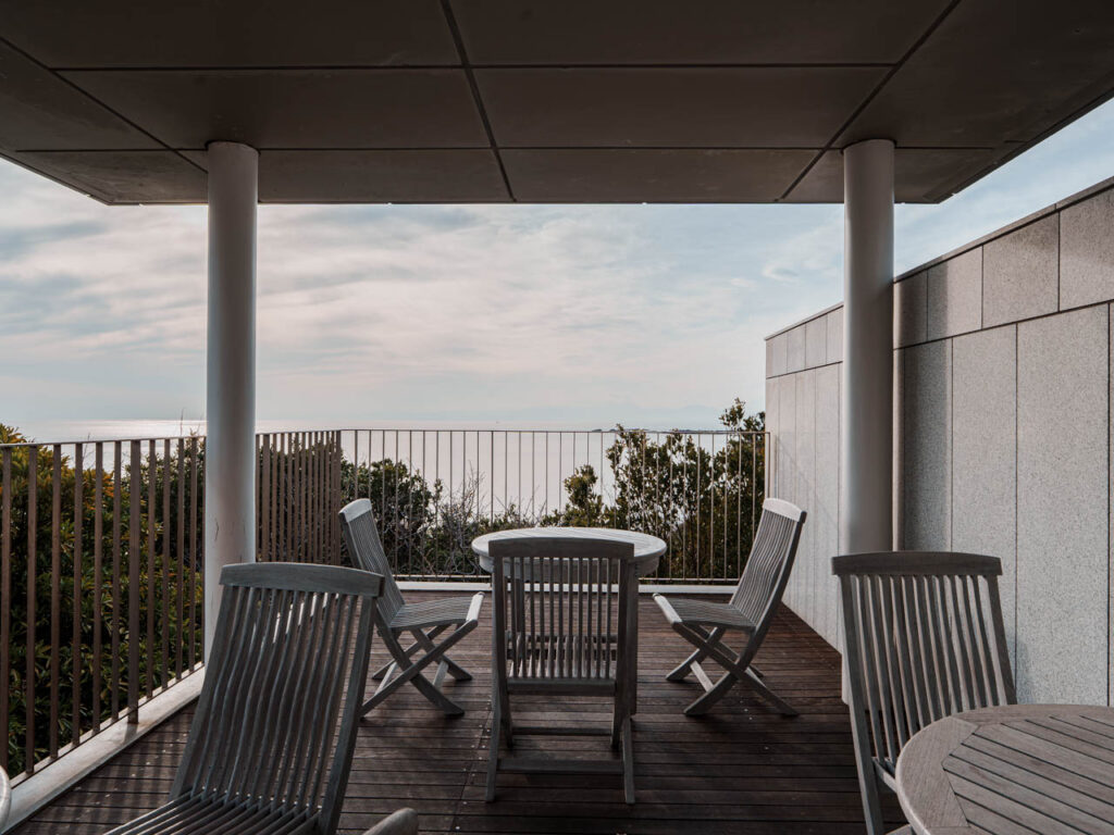 また、景色が綺麗な海沿いに立つ建築で、特にカフェからの景色が抜群です。