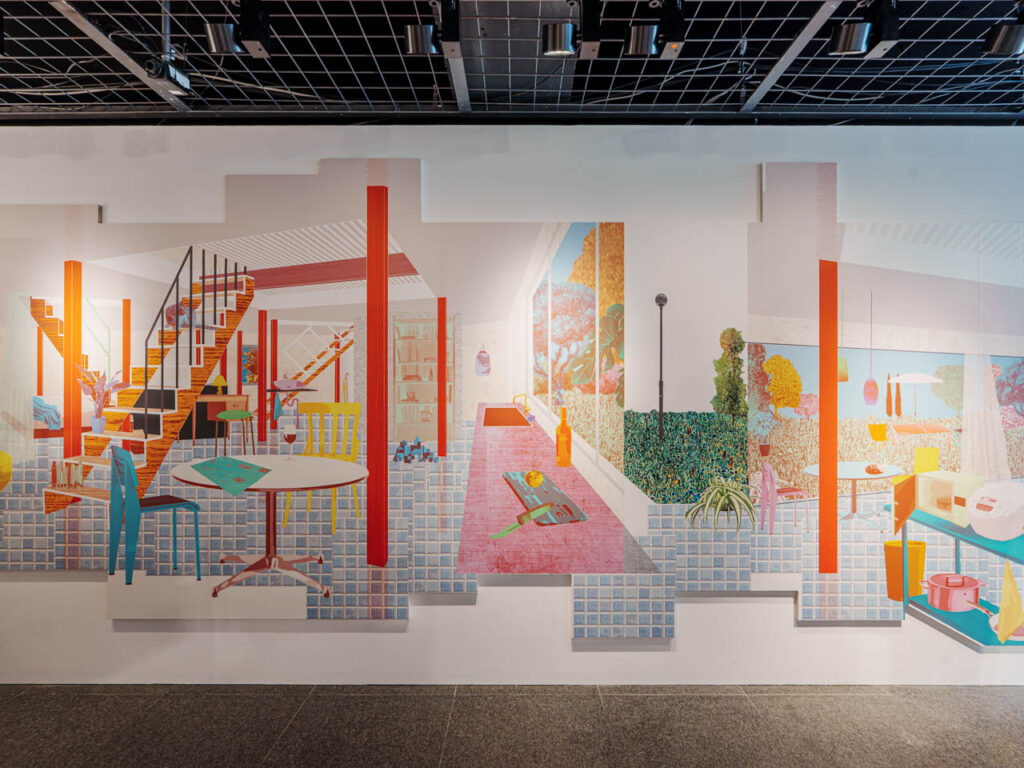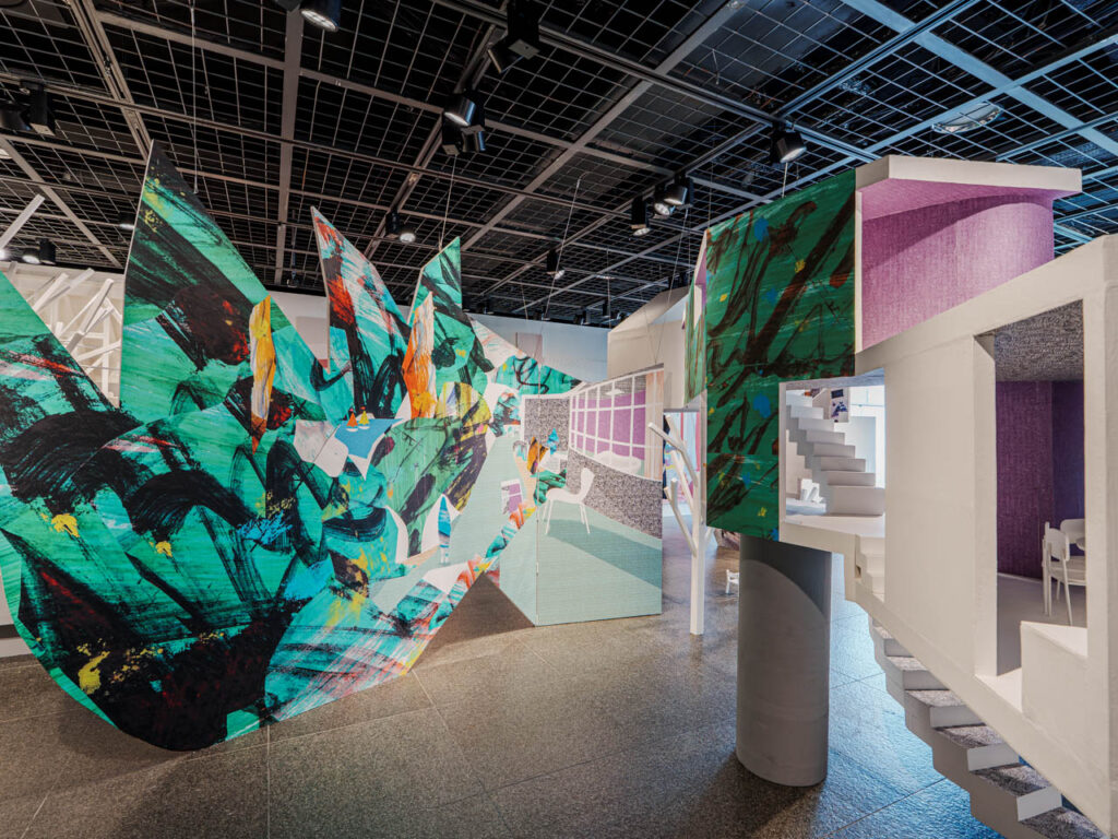 模型の中を覗いたり、カラフルなドローイングの周りを歩いたり、巡っていて楽しい展示空間になっていました。